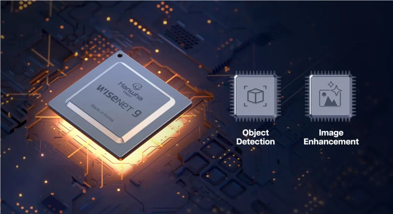 Las cámaras de la serie P de Hanwha Vision vienen equipadas con Wisenet 9, construido con una arquitectura NPU dual para ejecutar modelos de análisis de IA avanzados y optimización de imágenes para un rendimiento excepcional.